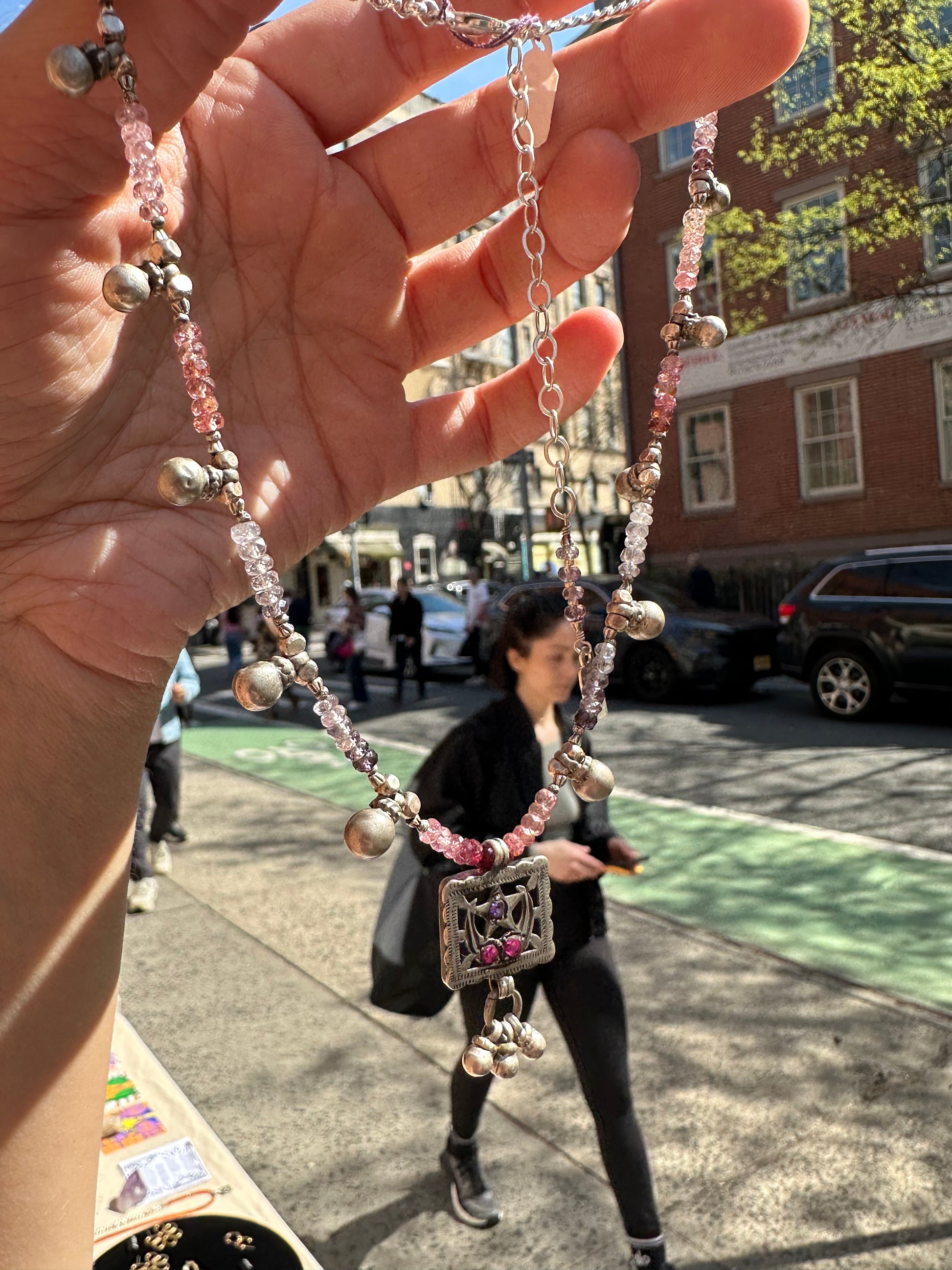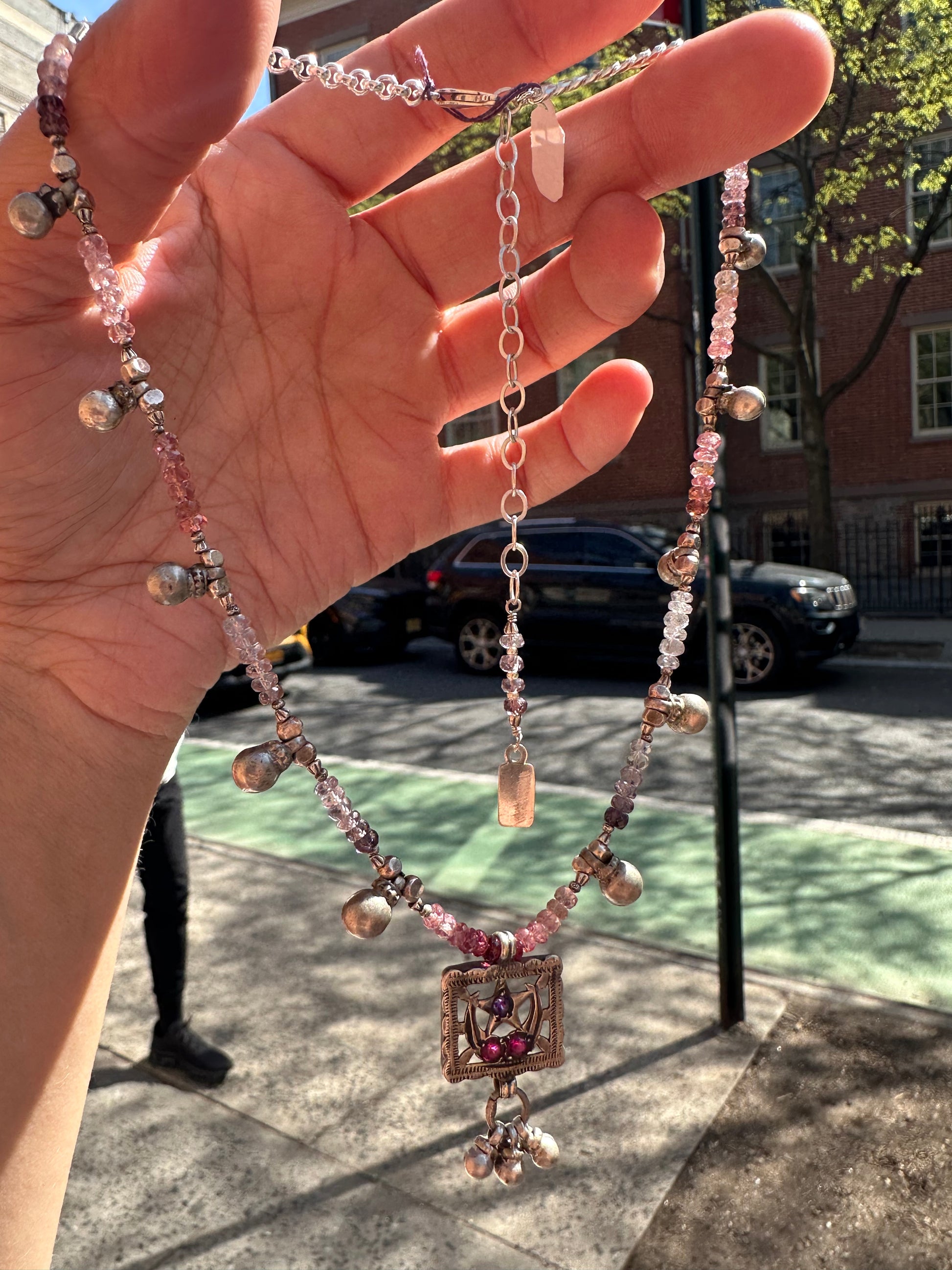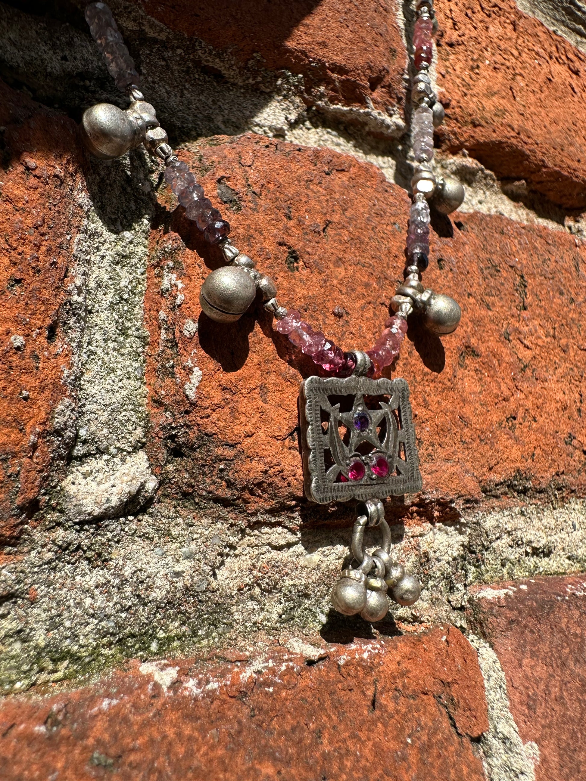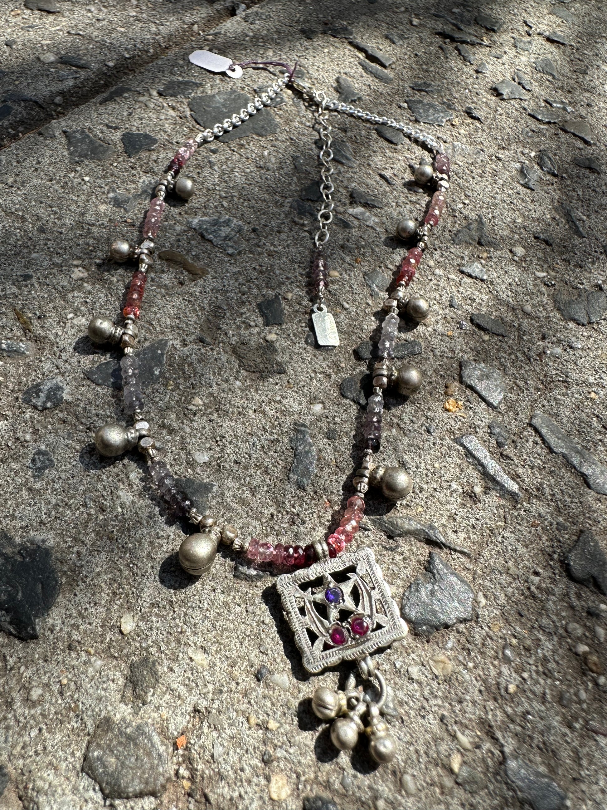 Adorn yourself with a ONE-OF-A-KIND charm necklace from the past <<<Dating back 100-200 years>>> these LUCKY CHARM and bell pendants from Rajasthan, India~ are hand strung with natural Spinel gemstones w/ Thai Fine Silver accent beads.