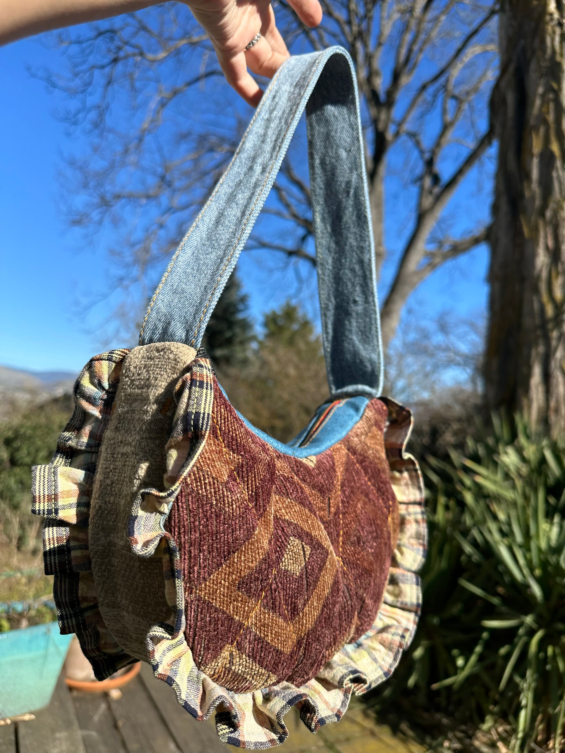 Add a dash of chic to your look with the Grande Bijou shoulder bag! This versatile bag is made with stylish and cozy upcycled upholstery fabric, perfect for all your essentials. Whether you're heading to brunch or a night out, the Grande Bijou will elevate your style.