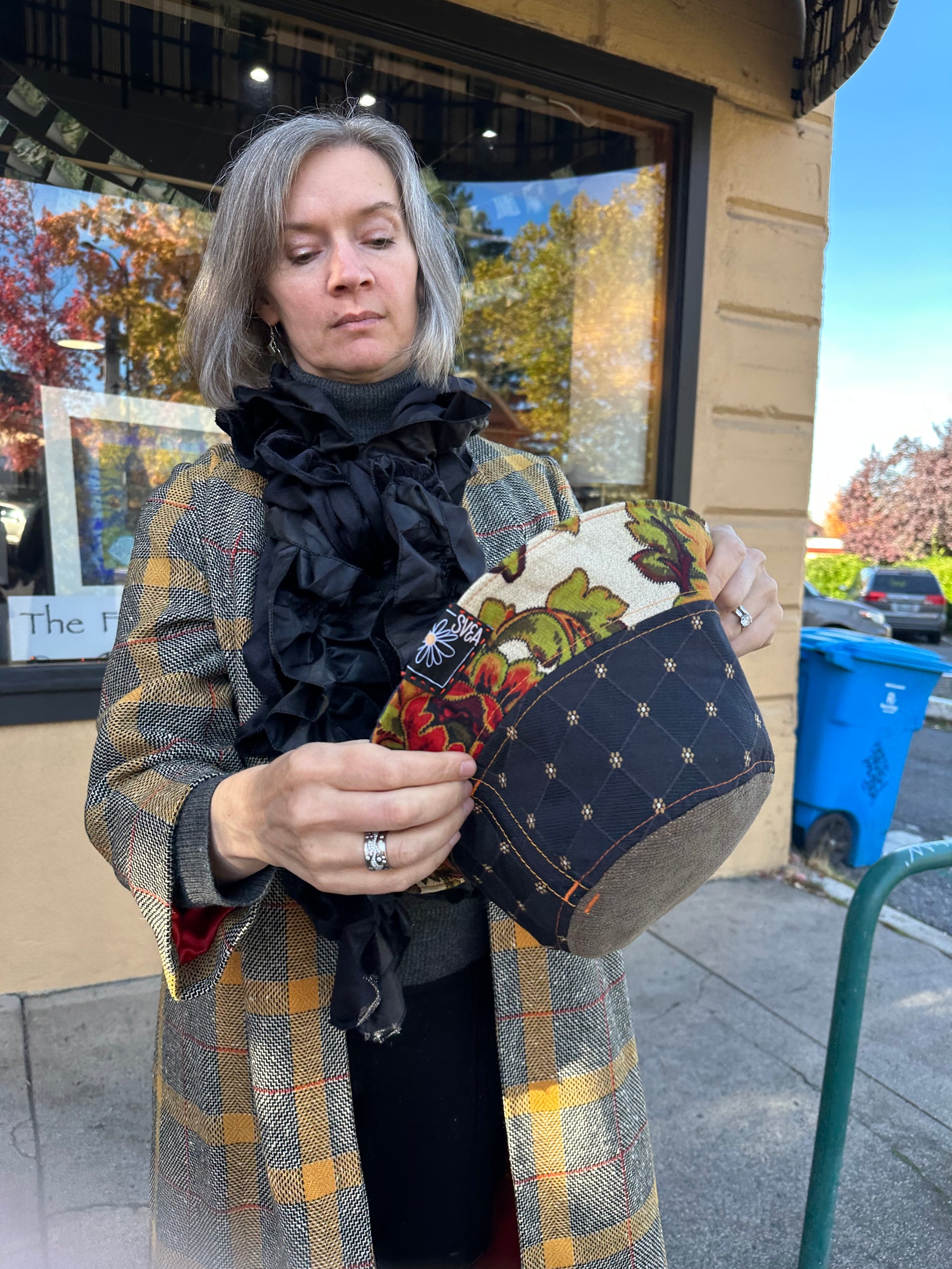 All Fabrics are chosen with sustainability in mind>>> all are deadstock, vintage, upcycled, thrifted or my friends grandmas that she just didn’t get around to using. There is just so much waste on the planet these days and I’d like to add less to the garbage in our landfills and in our oceans~>>> I am attempting to create a world where we use what we have, and make it more beautiful in the process.