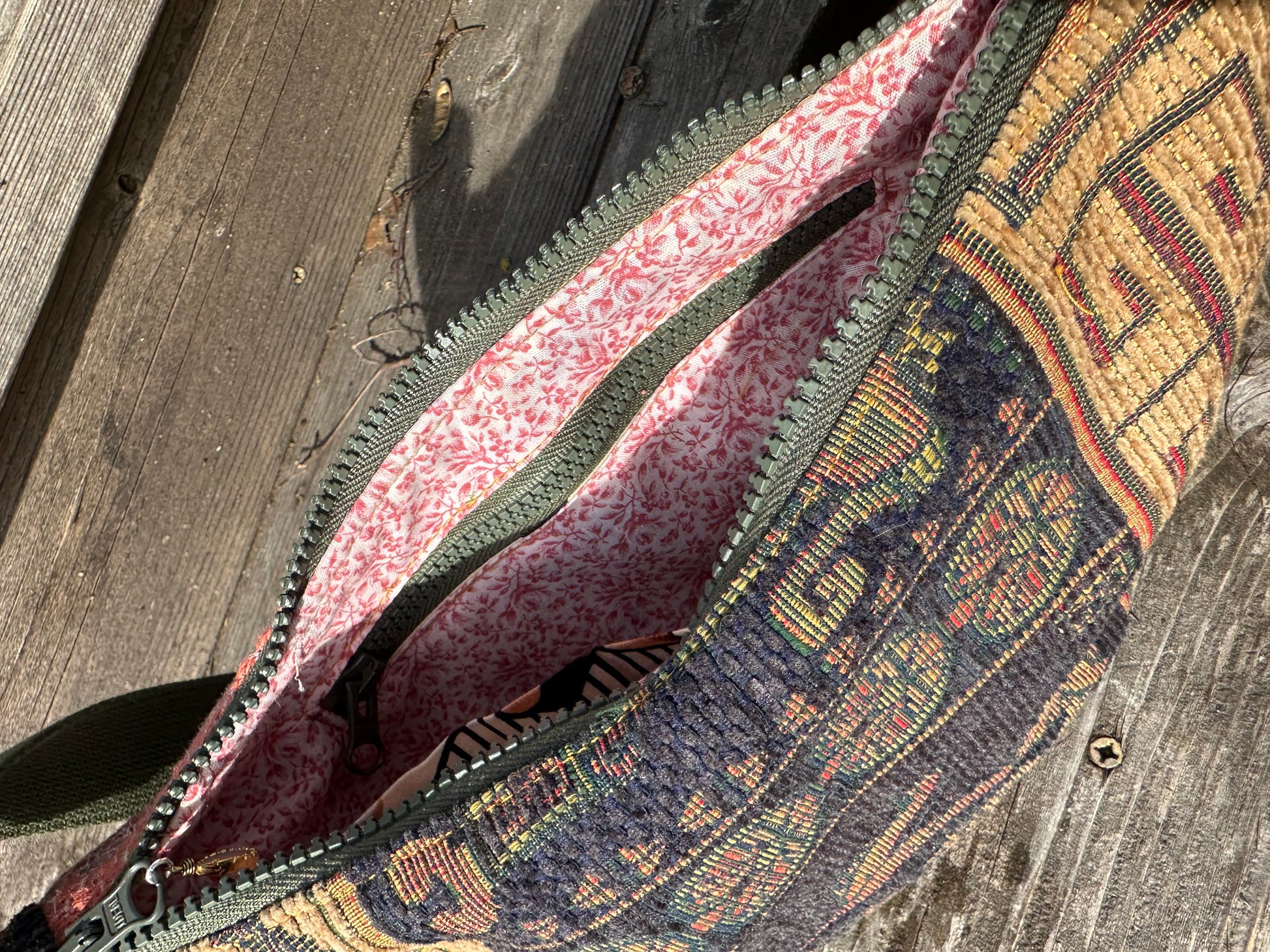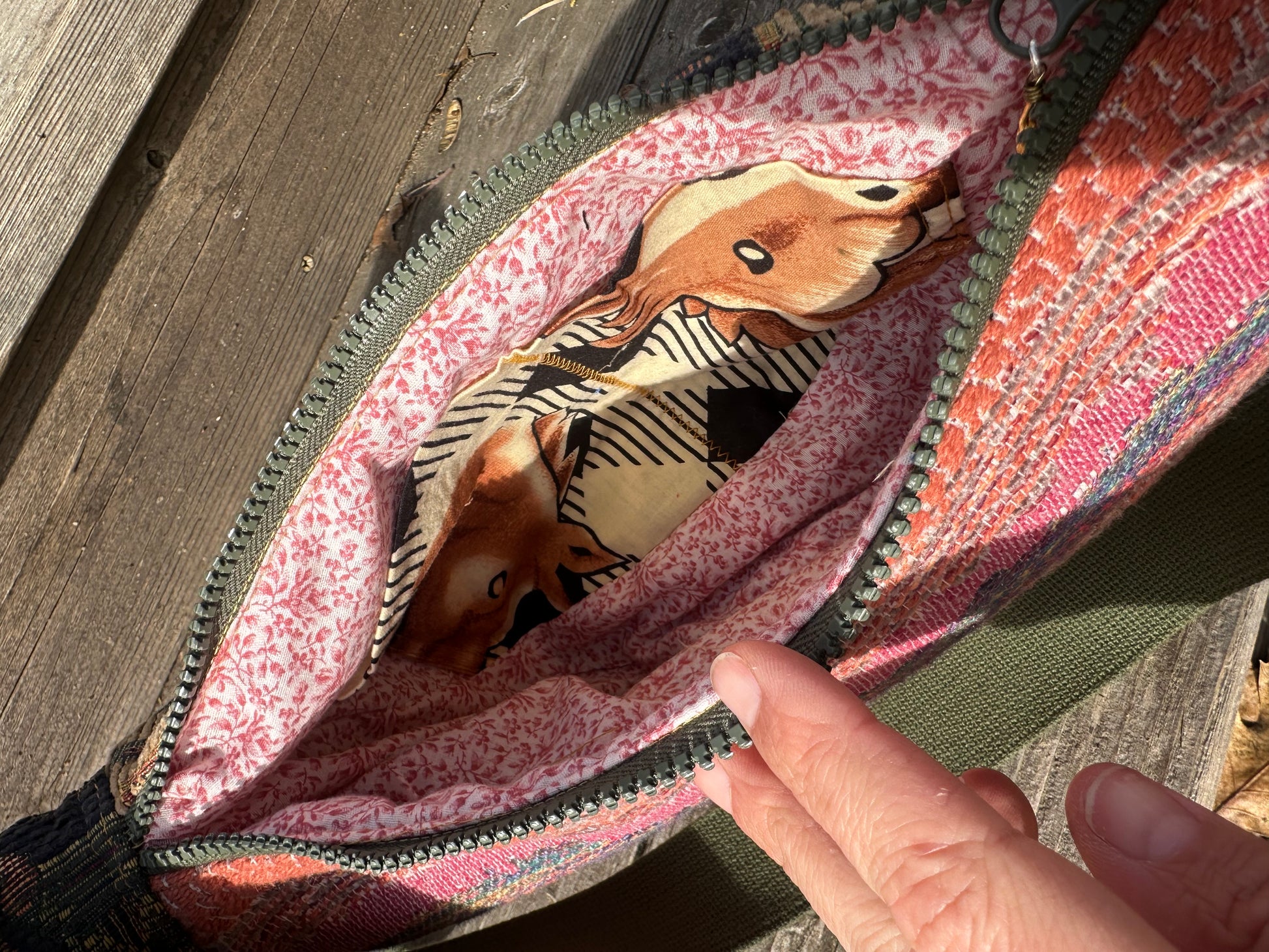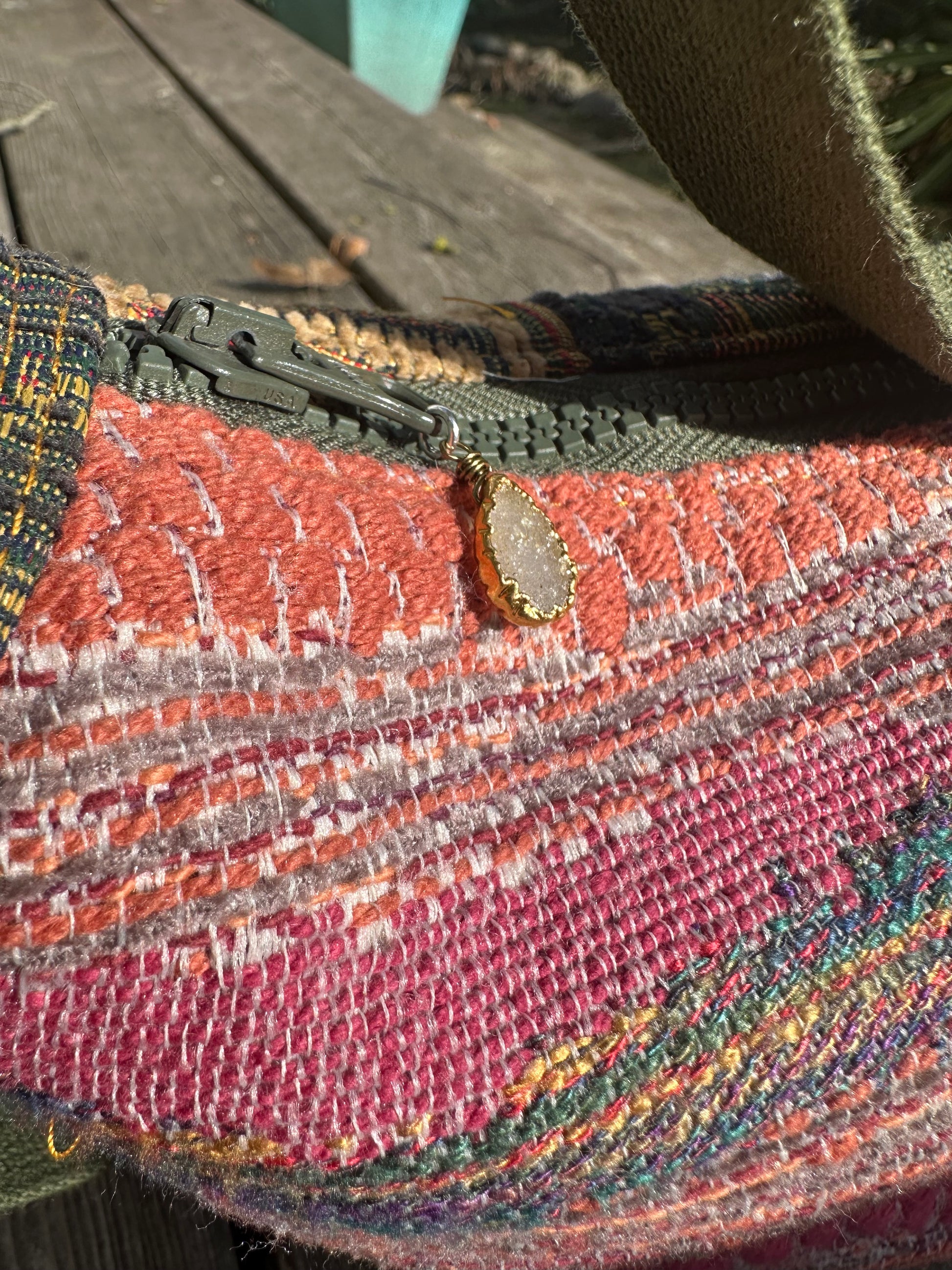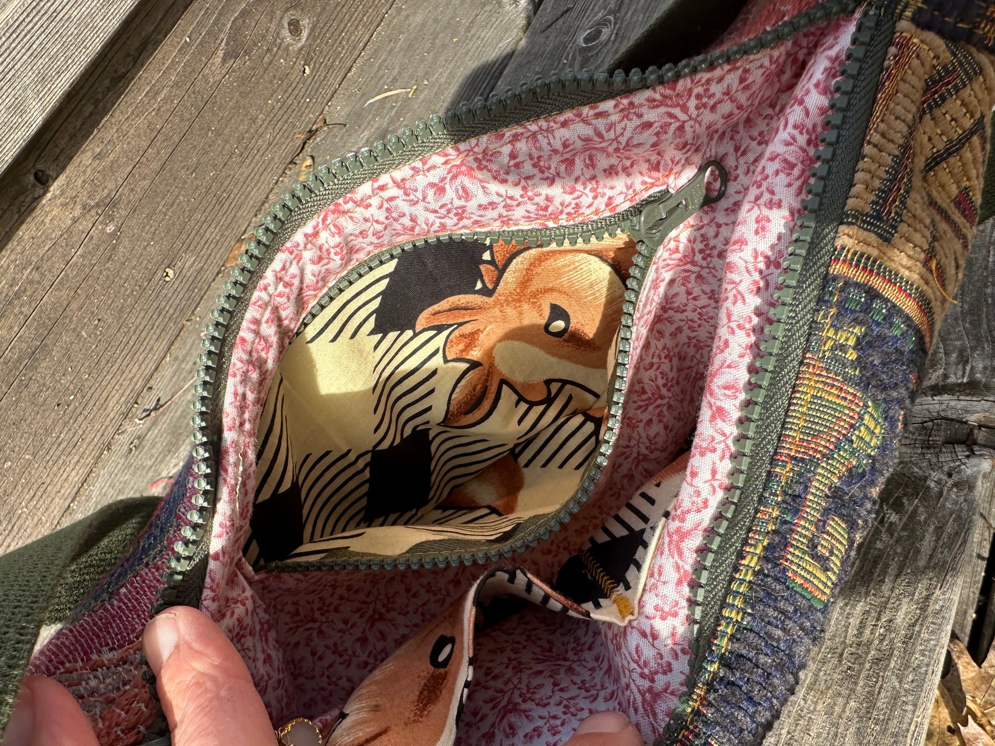 Oh! And my bags all wear jewelry!+++ are adorned with their own beaded zipper pulls !!! As well as, some of these fabrics are literally from old couches -and//or- remnants from making upholstered furniture. I feel like these kind of fabrics make me feel cozy and cuddly>>> and who doesn’t wanna feel like that all times ¿?
