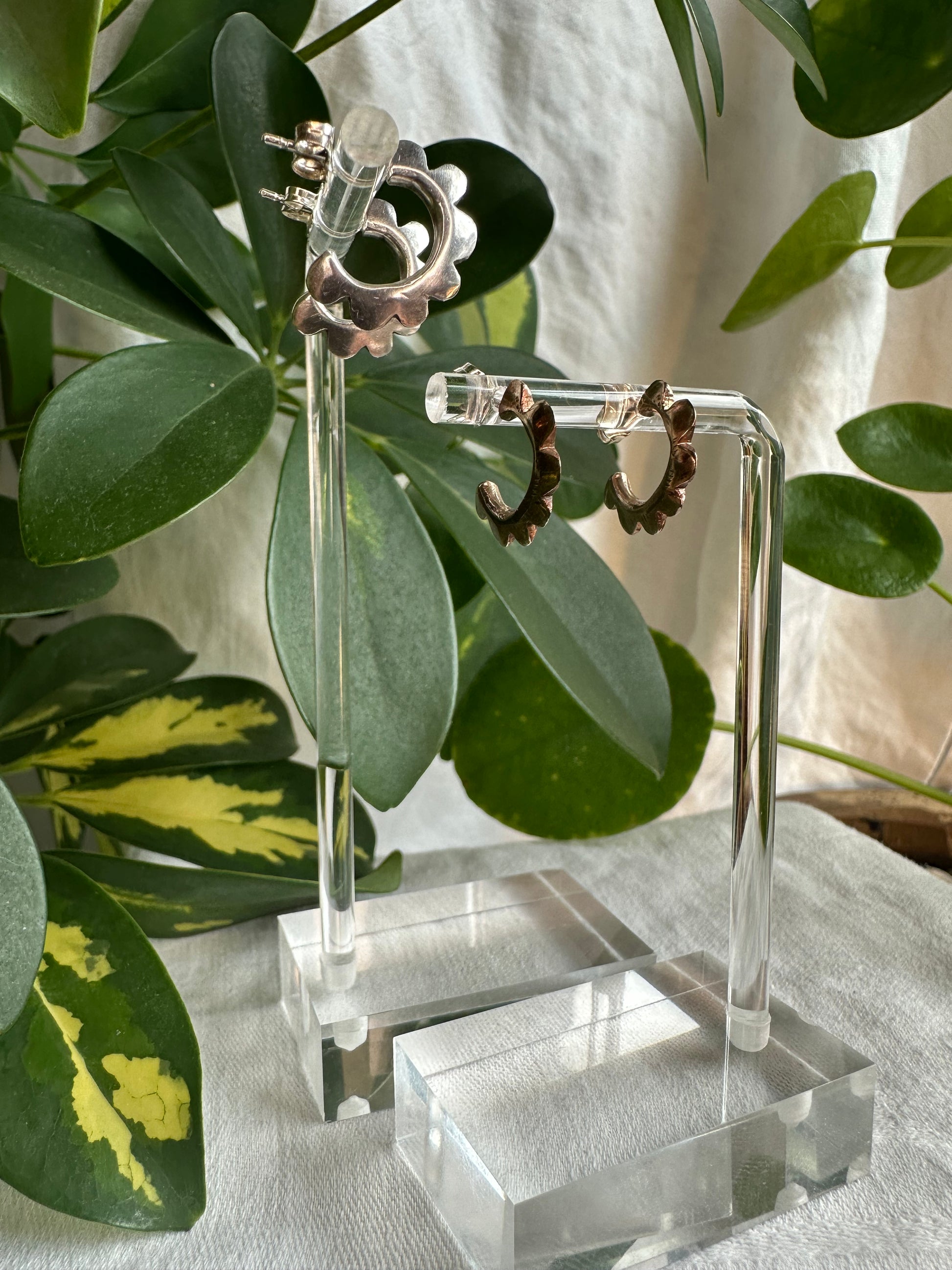 This little daisy is a scalloped hoop that hugs and holds your sweet earlobe while the wind whispers the secrets of the moon.