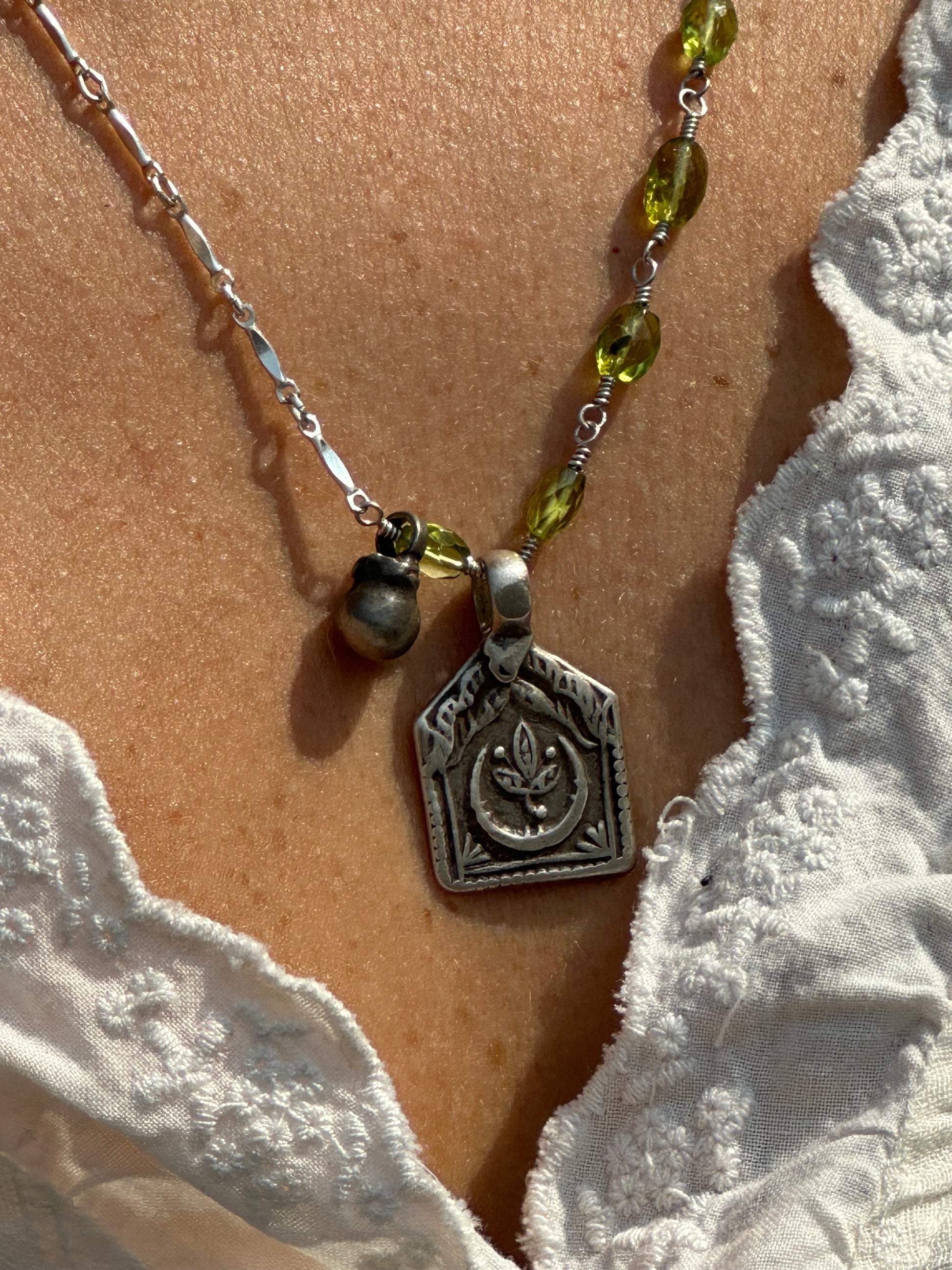 Adorn yourself with this ~150 year old Lucky Charm Prayer Pendant from India depicting the Moon~reminding us of the rhythms of life, creativity and wisdom