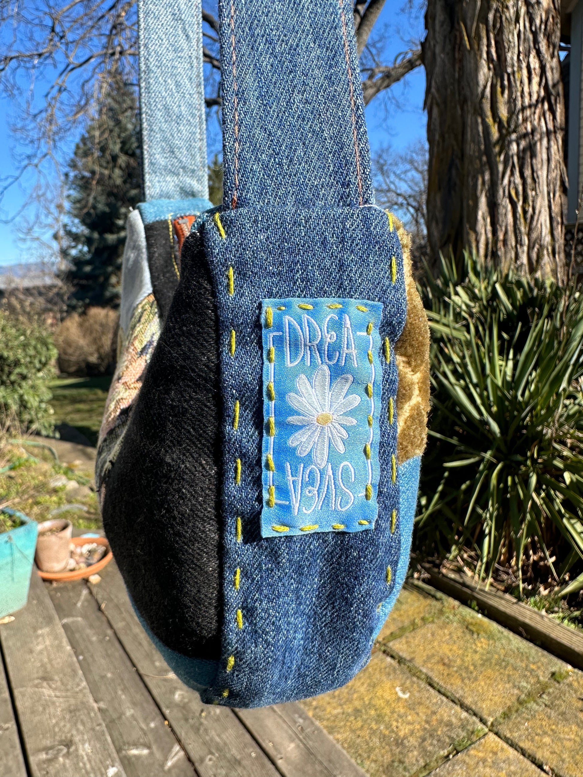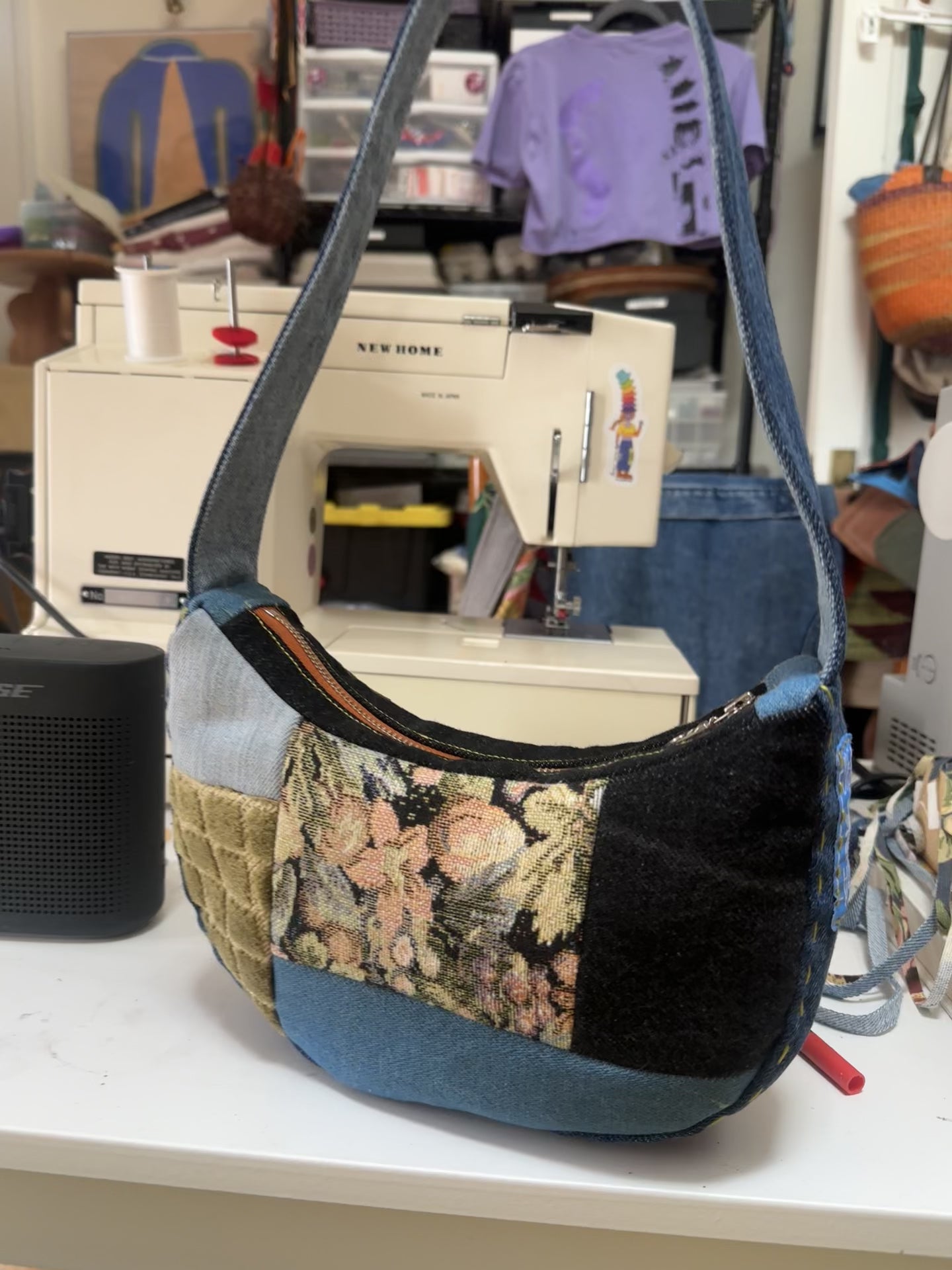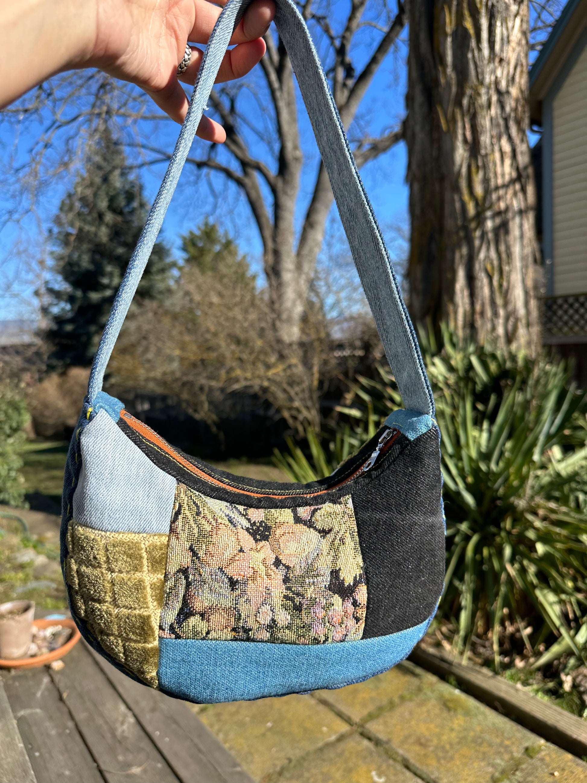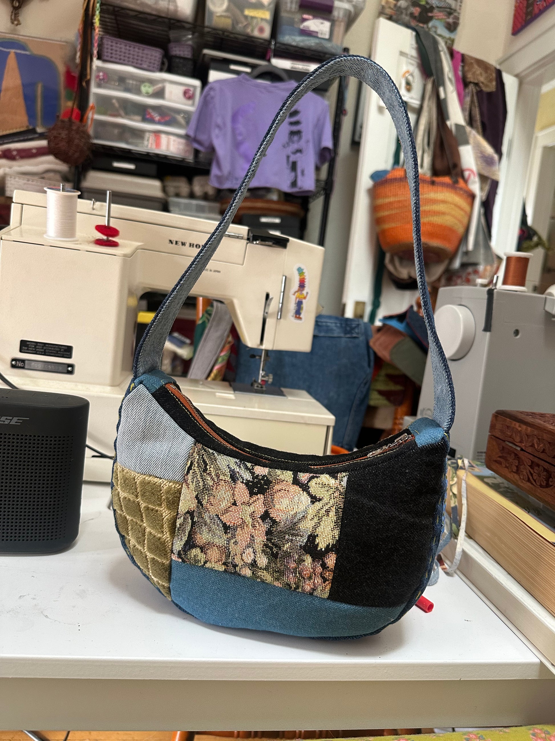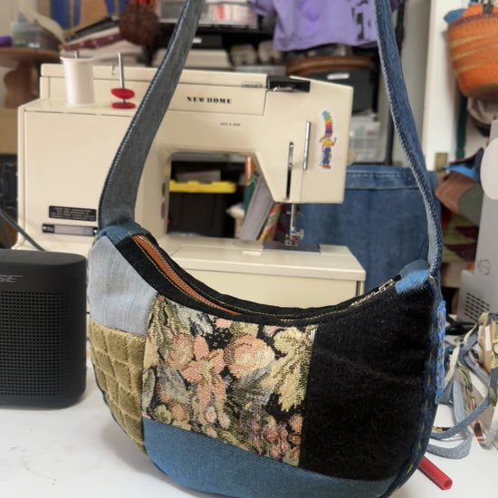 Add some quirky charm to your ensemble with the Petite Bijou shoulder bag. Perfectly petite and sophisticated, this retro-inspired purse features unique upcycled upholstery fabrics and playful hand embroidered details. Guaranteed to add a touch of whimsy to any outfit.