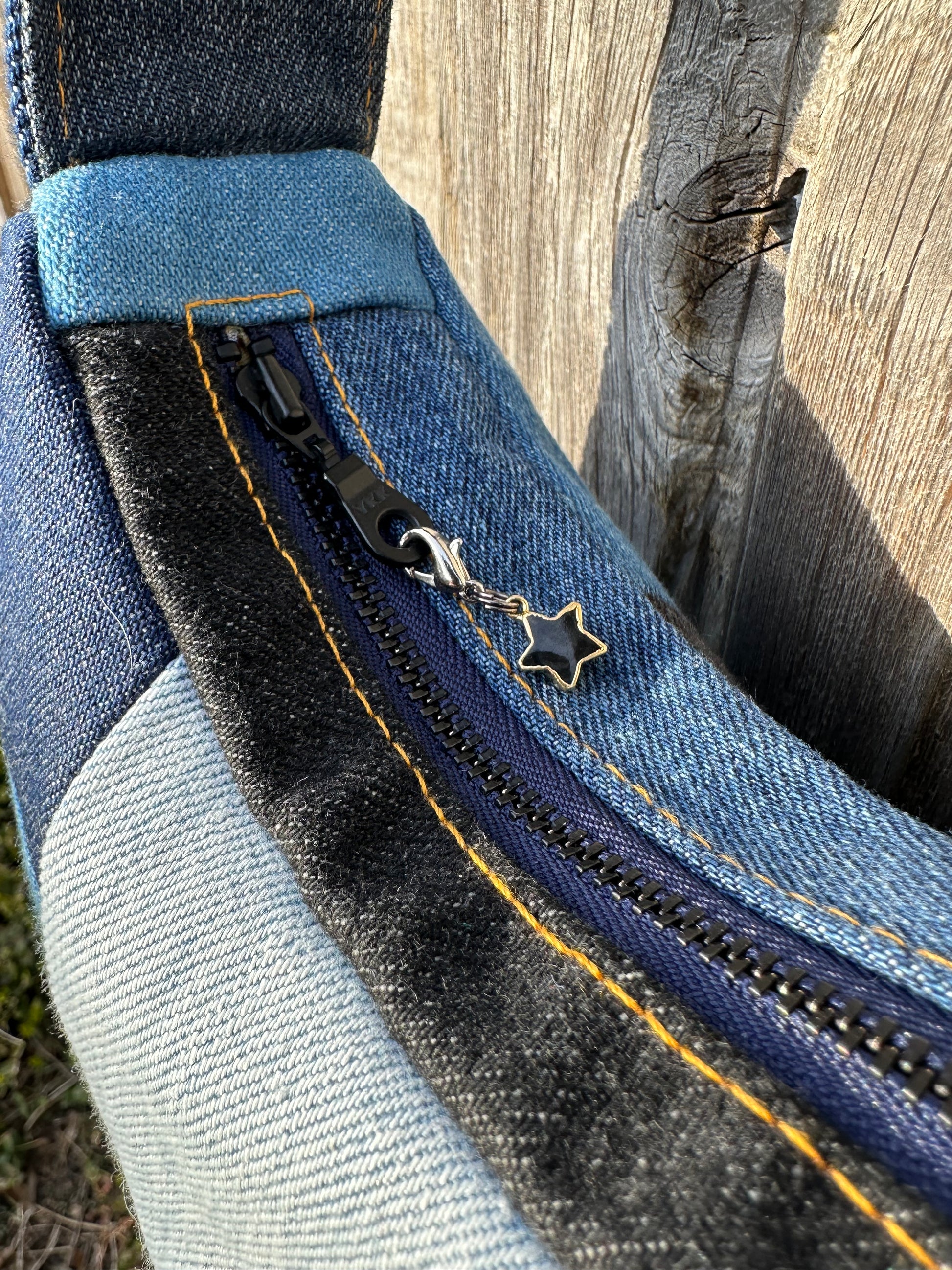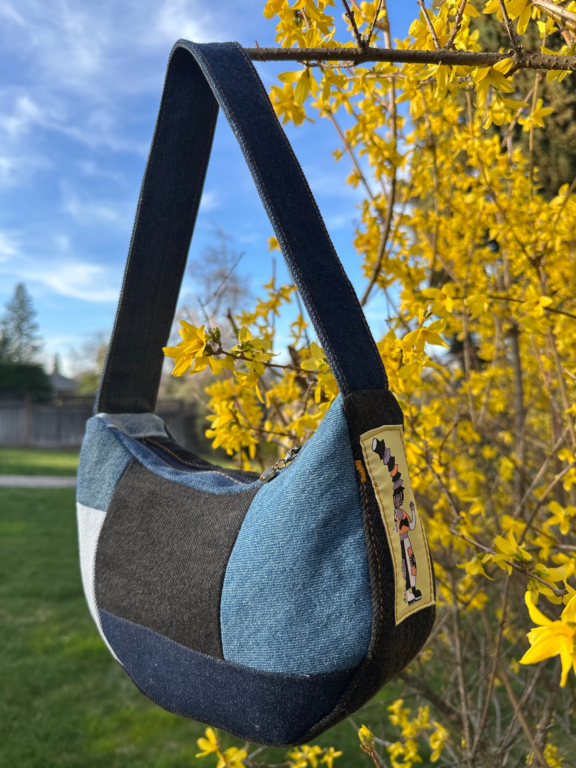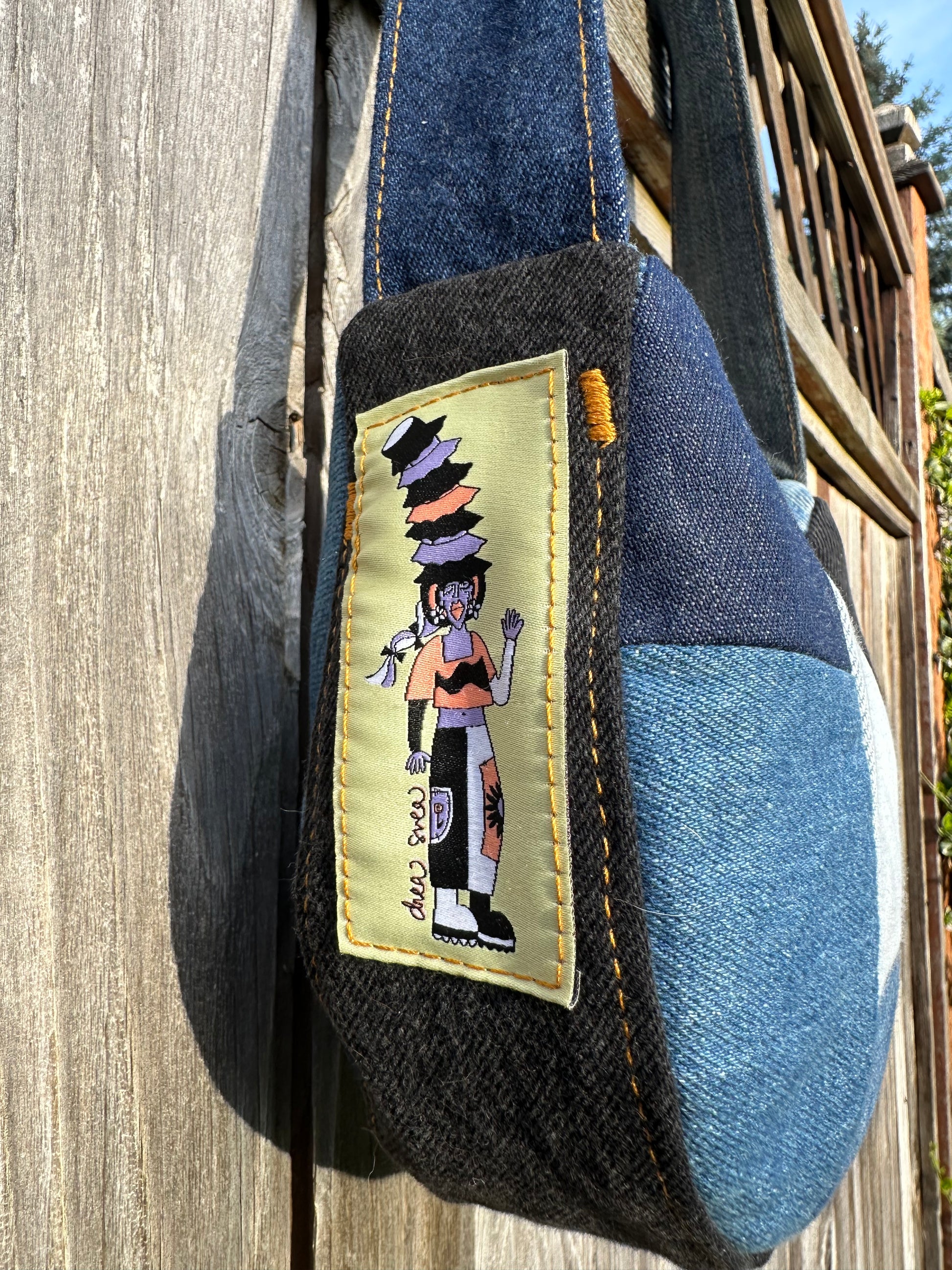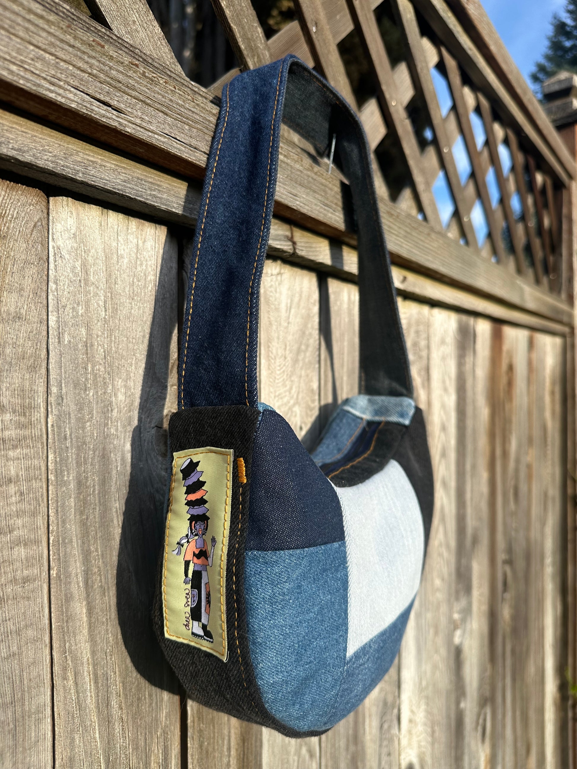 Add some quirky charm to your ensemble with the Petite Bijou shoulder bag. Perfectly petite and sophisticated, this retro-inspired purse features unique upcycled vintage jean fabrics. Guaranteed to add a touch of canada tuxedo realness to any outfit.