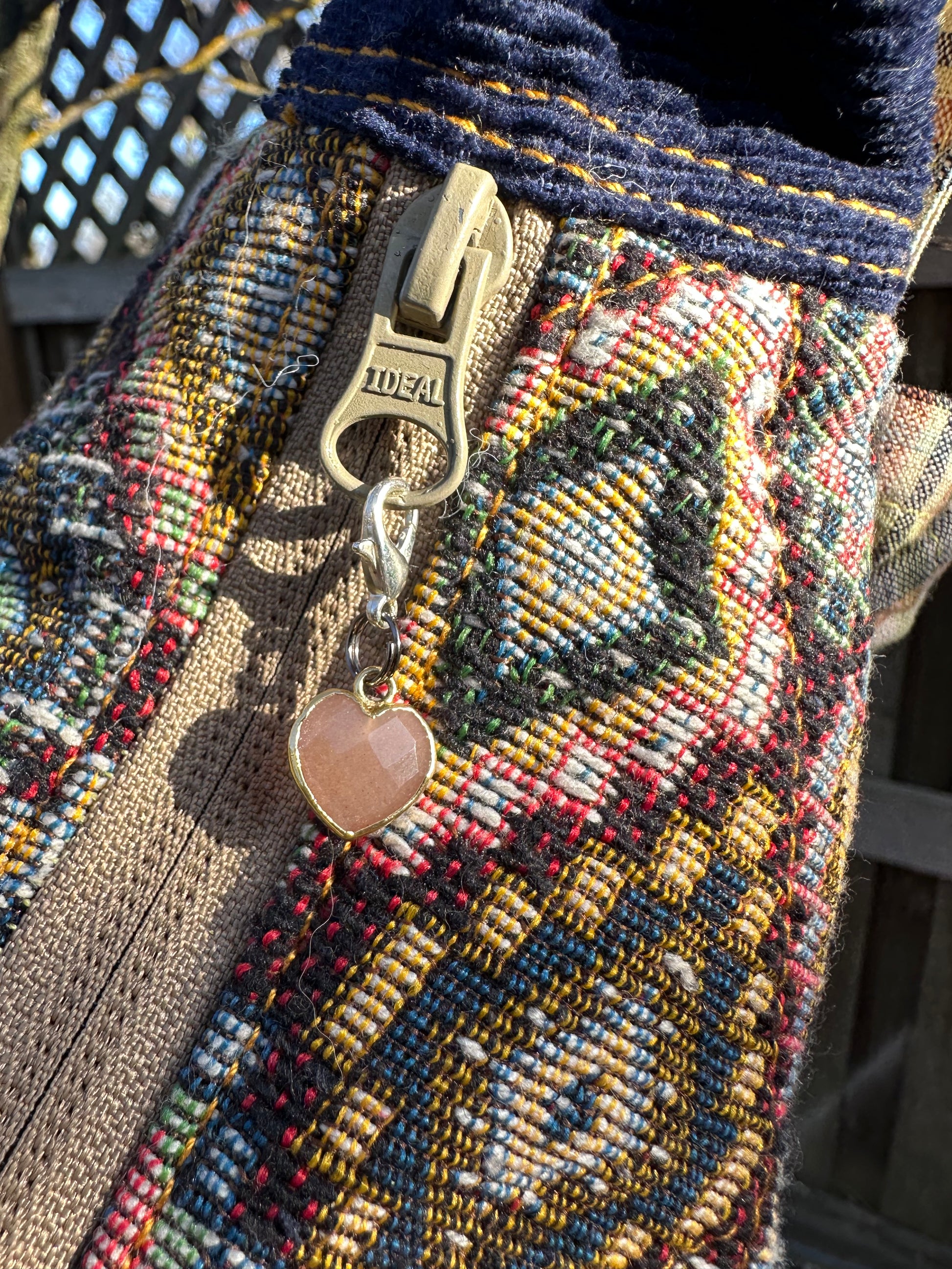 This *little jewel* of a bag comes with its own jewelry!!! ~>featuring a Peach Moonstone Heart Pendant. This stone is a beautiful and gentle stone that is often associated with feminine energy, making it a great choice for a "girlie girl" looking to enhance her spiritual and emotional well-being. 🌌💗✔️👛🫶