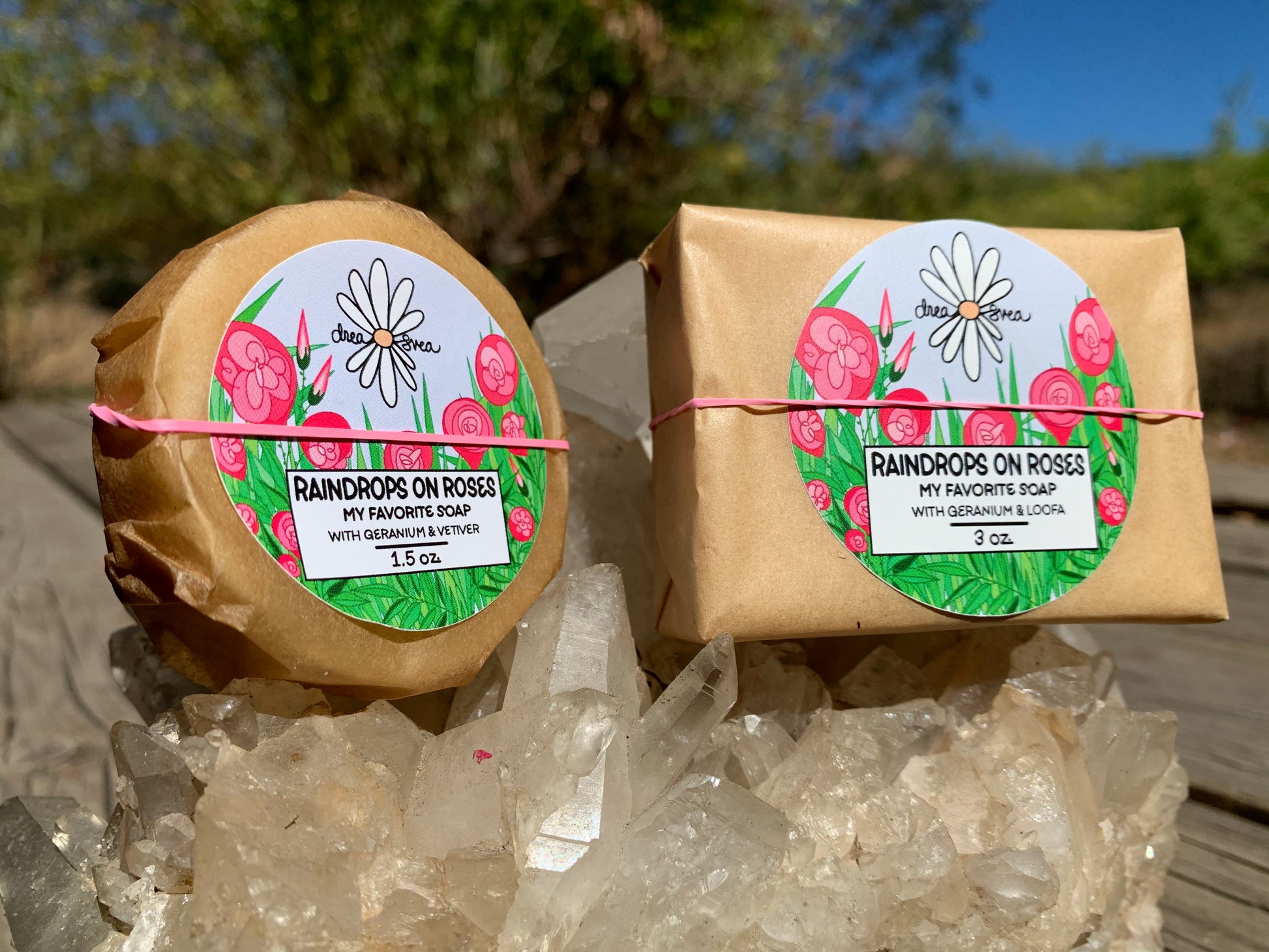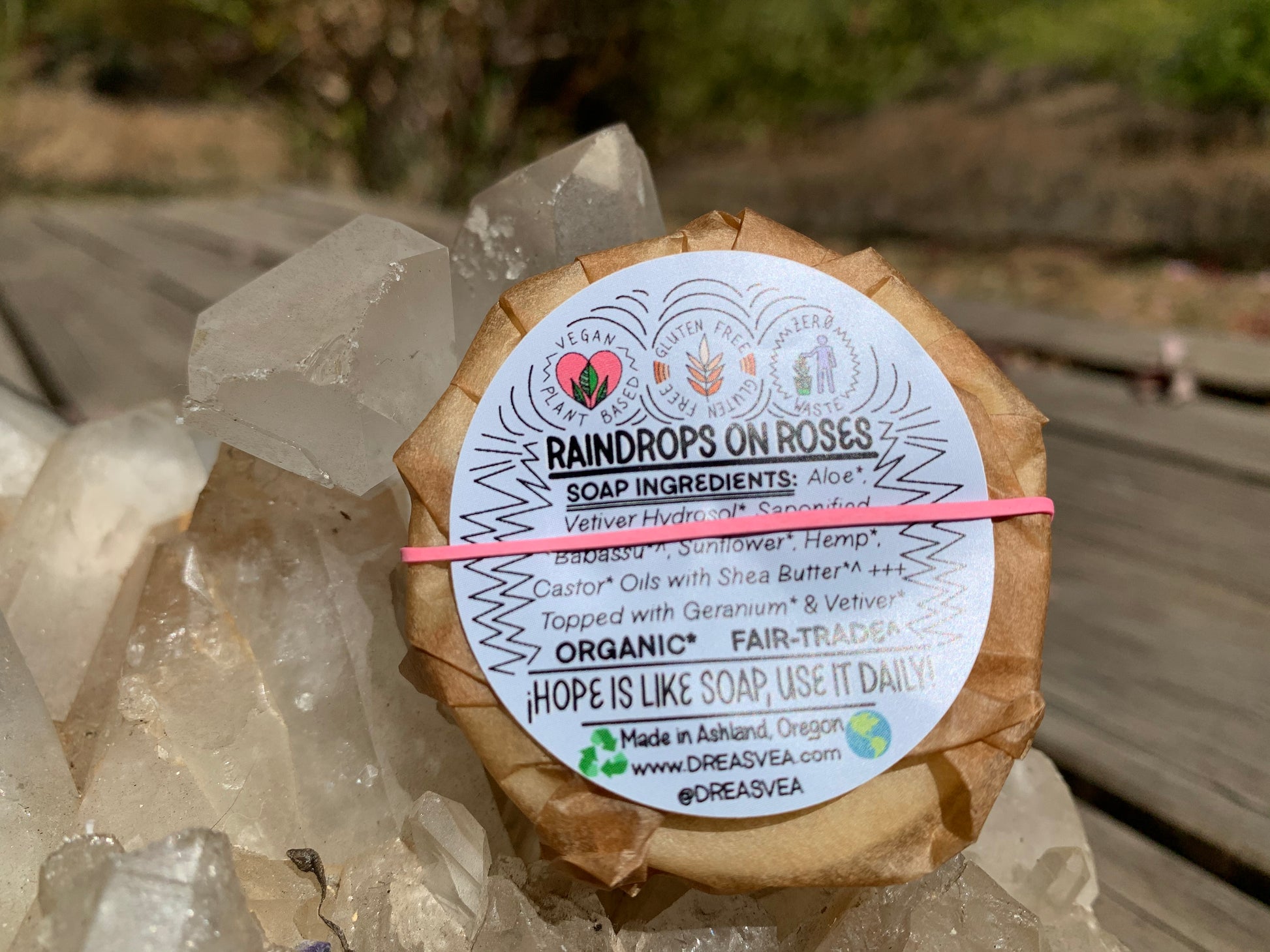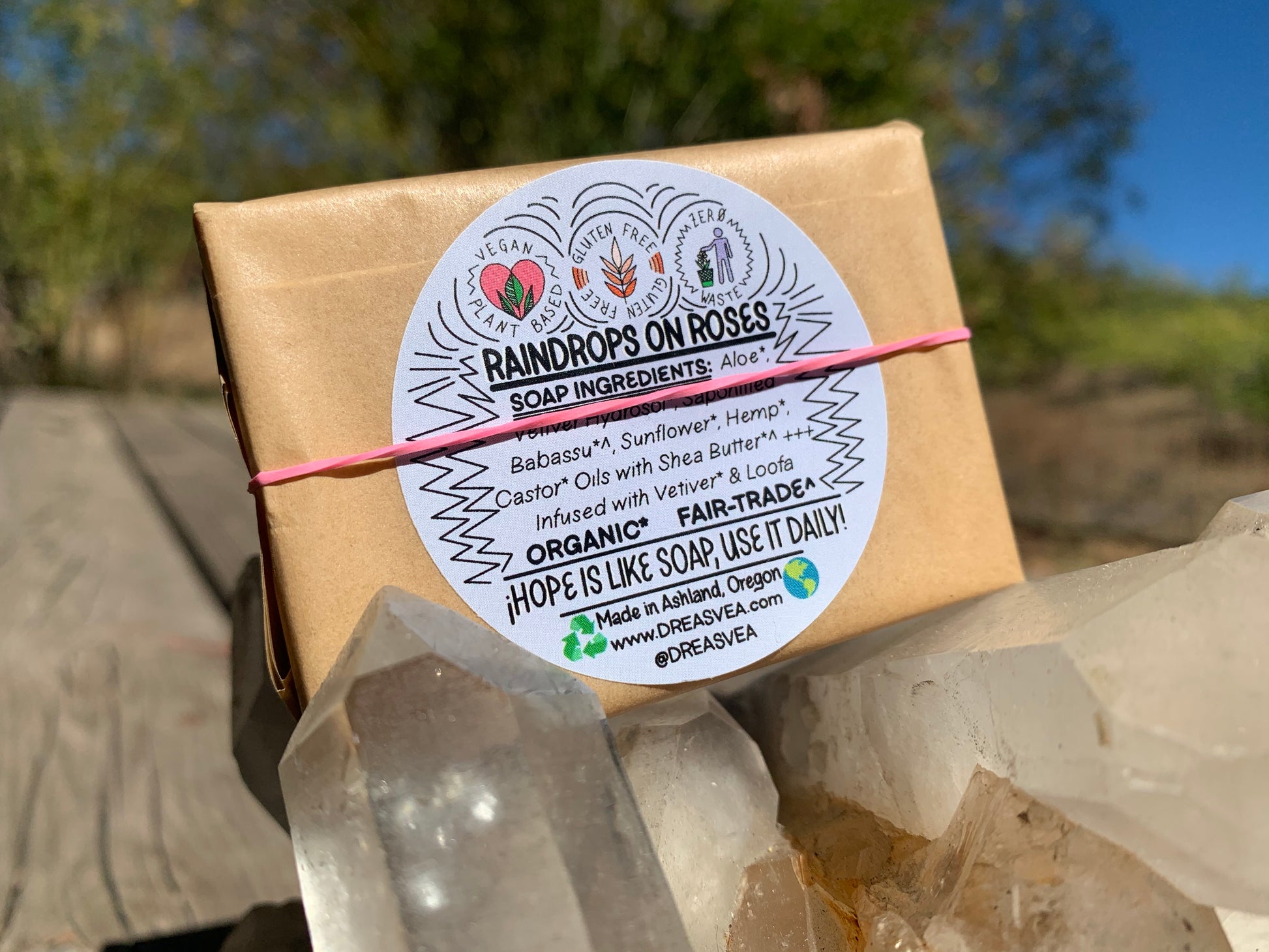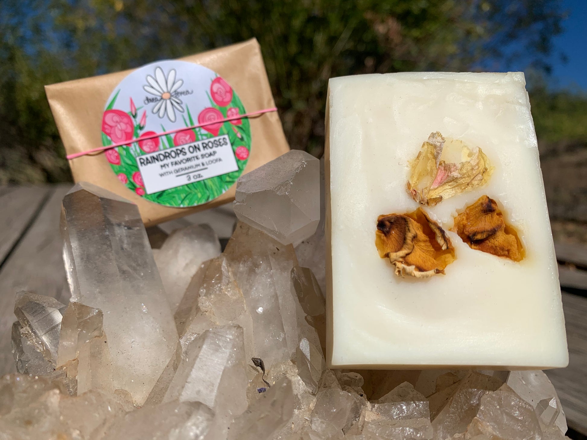 How to Use? Suds up with this beautiful hand-crafted cold-process soap. Adorned with flowers and filled with oils, herbs + plants for healing, moisturizing and deep cleansing.